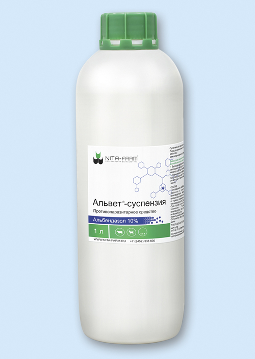 Крупному рогатому скоту применяют 10% суспензию при мониезиозе, легочных и желудочно-кишечных нематодозах в дозе 7.5 мл суспензии на 100 кг массы животного (7.5 мг/кг альбендазола), при хроническом фасциолезе - в дозе 10 мл суспензии на 100 кг массы животного (10 мг/кг альбендазола).