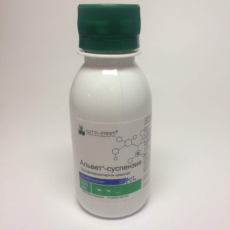 Крупному рогатому скоту применяют 10% суспензию при мониезиозе, легочных и желудочно-кишечных нематодозах в дозе 7.5 мл суспензии на 100 кг массы животного (7.5 мг/кг альбендазола), при хроническом фасциолезе - в дозе 10 мл суспензии на 100 кг массы животного (10 мг/кг альбендазола).