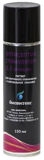 АНТИСЕПТИК-СТИМУЛЯТОР Д-3 фракция применяют наружно в виде аэрозоля, распыляя на расстоянии 15-20 см непосредственно на поврежденную поверхность кожи или конечностей, один раз в сутки до выздоровления животного или птицы.
