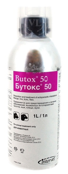 Бутокс 50 используют только для наружной обработки животных и помещений. Непосредственно перед применением готовят водную рабочую эмульсию препарата. Обрабатывают животных методом опрыскивания или купания.