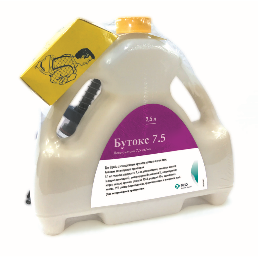 Для профилактики и лечения сифункулятоза (поражение вшами) препарат применяют однократно. Овец одного стада обрабатывают после стрижки одновременно. Однократная обработка Бутоксом 7.5 крупного рогатого скота обеспечивает защиту от клещей в течение 4-5 недель.