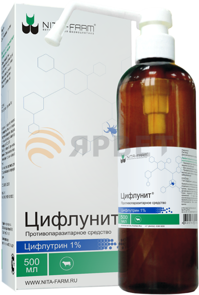 Цифлунит применяют для защиты крупного рогатого скота от зоофильных мух, слепней, оводов, комаров и мошек в пастбищный период.