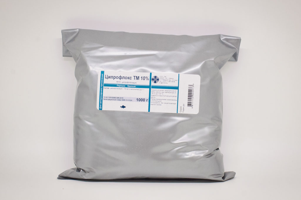 Скармливание лечебных кормов с ципрофлоксацином прекращают за 30 дней до реализации рыбы в торговую сеть.