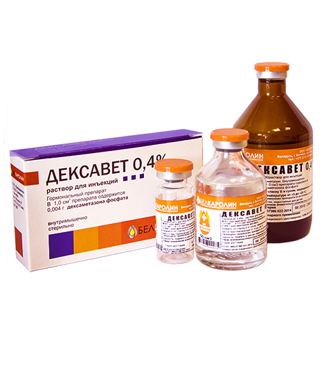 Дексавет 0,4% вводят внутримышечно, желательно в первой половине дня: лошадям и крупному рогатому скоту – 5 см³; свиньям – 2-3 см³; поросятам, собакам и кошкам – 0,5-1 см³ один раз в день в течение трех суток. При необходимости курс лечения следует продолжить.