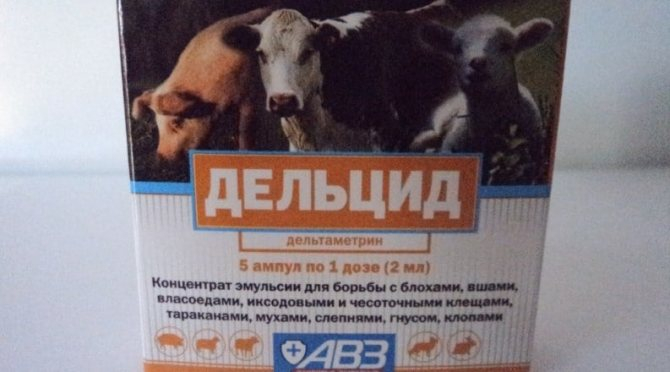 Для обработки овец, крупного рогатого скота, свиней, кроликов и собак при арахно-энтомозах, а также для дезинсекции и дезакаризации животноводческих помещений и других объектов ветеринарного надзора. Противопоказания. Не разрешается применение Дельцида для обработки ослабленных и истощенных животных, а также самок позднее, чем за 2 недели до родов.