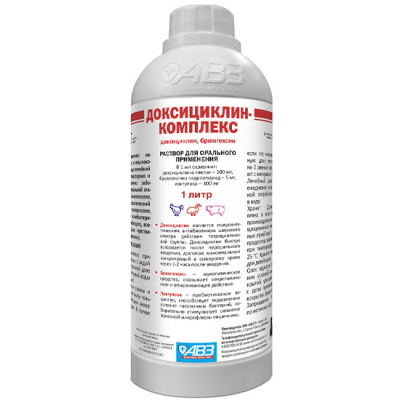 Свиньям и сельскохозяйственной птице при респираторных и желудочно- кишечных заболеваниях бактериальной этиологии, в т. ч. сальмонеллезе, дизентерии, энзоотической пневмонии, пастереллезе, микоплазмозе, колибактериозе и других инфекциях, возбудители которых чувствительны к доксициклину. Противопоказания. Повышенная индивидуальная чувствительность к компонентам препарата. Запрещается применять препарат курам-несушкам, животным с выраженной почечной и печеночной недостаточностью. Не допускается одновременное применение Доксициклин-комплекса с миорелаксантами, веществами, подавляющими кашлевой центр, антибиотиками пенициллиновой и цефалоспориновой групп, минеральными добавками и лекарственными препаратами, содержащими соли кальция, магния, железа и алюминия. Доксициклин может повышать фоточувствительность кожи.