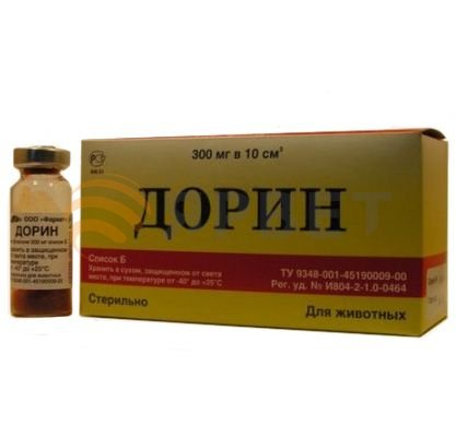 Убой на мясо разрешается не ранее чем через 15 суток после последнего применения Дорина. Мясо животных, вынужденно убитых до истечения указанного срока, может быть использовано для кормления пушных зверей.