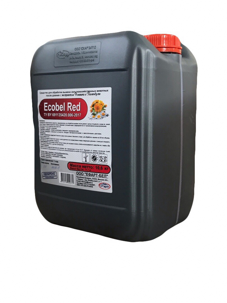 Средство для обработки вымени после доения на основе экстрактов ромашки и календулы. Пленкообразующее средство, готовый раствор.