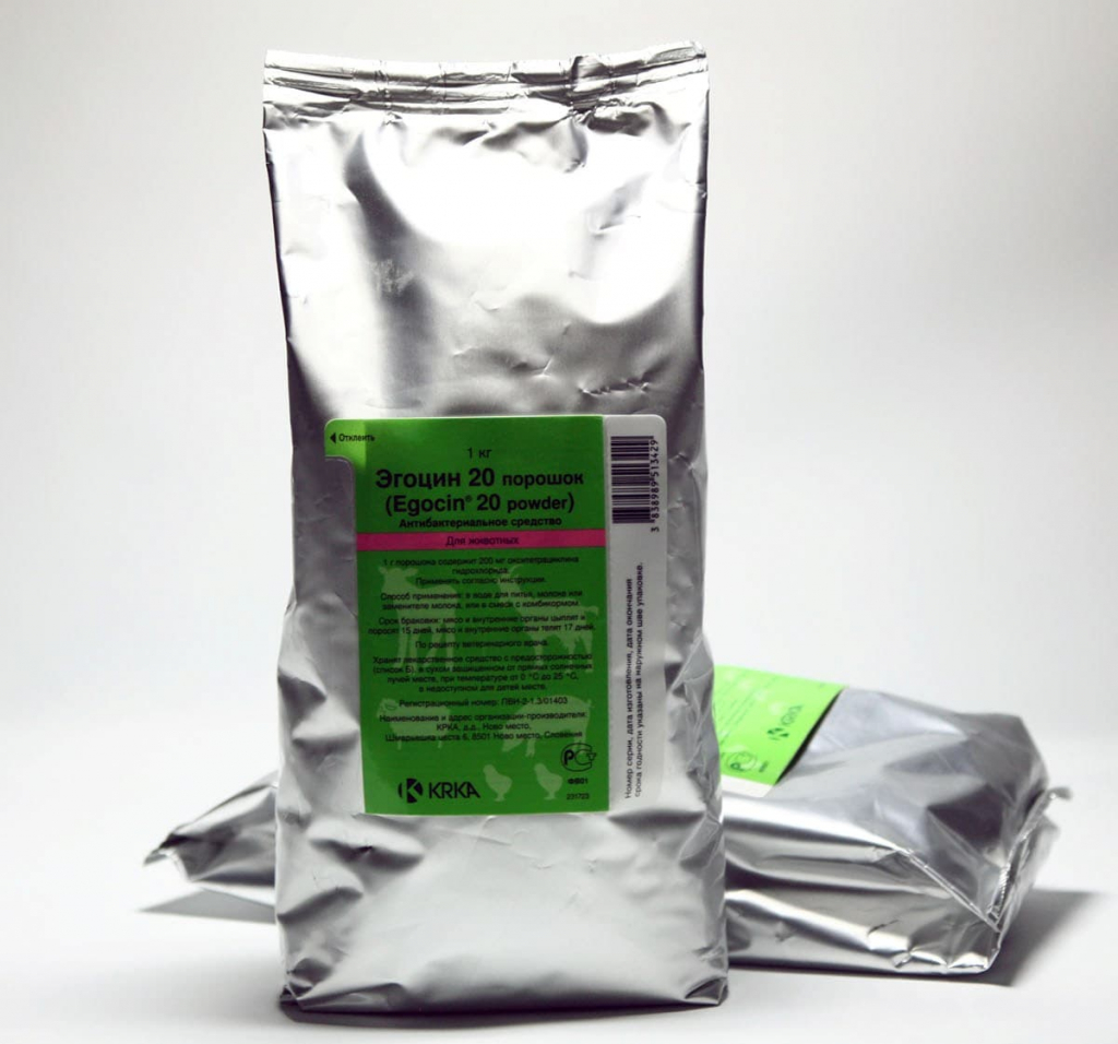 Лечение молодняка крупного и мелкого рогатого скота, поросят, цыплят при бактериальных инфекциях органов дыхания, ЖКТ, мочеполовой системы и других заболеваниях, возбудители которых чувствительны к окситетрациклину, в т.ч.: — колибактериоз; — пастереллез; — стрептококкоз; — стафилококкоз; — вторичные инфекции при вирусных заболеваниях; — энзоотическая пневмония; — гемофилез; — атрофический ринит у поросят. Противопоказания к применению препарата ЭГОЦИН® 20 ПОРОШОК — выраженные нарушения функции печени и почек; — индивидуальная повышенная чувствительность животного или птицы к тетрациклинам. Запрещается применять препарат: — курам-несушкам в связи с выделением окситетрациклина с яйцом; — жвачным животным с функционально развитыми преджелудками из-за риска изменения флоры в пищеварительном тракте. Не следует применять препарат собакам, кошкам, лошадям.