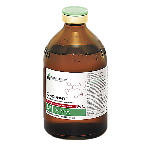 Лечение инфекционных заболеваний, вызванных чувствительными к энрофлоксацину и колистину микроорганизмами, у телят, ягнят и поросят, в т.ч.: — колибактериоз; — сальмонеллез; — пастереллез; — респираторные инфекции. Лечение инфекционных заболеваний, вызванных чувствительными к энрофлоксацину и колистину микроорганизмами, у взрослых свиней, в т.ч.: — атрофический ринит; — энзоотическая пневмония; — синдром метрит-мастит-агалактия. Энронит® запрещается применять: — дойным коровам; — новорожденным телятам, ягнятам и поросятам; — животным с заболеваниями почек и печени; — при поражениях нервной системы, сопровождающиеся судорогами.