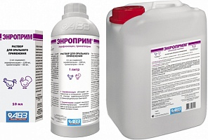 Цыплятам – бройлерам, ремонтному молодняку кур и индейкам с лечебнопрофилактической целью при колибактериозе, сальмонеллезе, хронических респираторных заболеваниях, стрептококкозе, некротическом энтерите, гемофилезе, микоплазмозе, смешанных инфекциях и вторичных инфекциях при вирусных болезнях, возбудители которых чувствительны к энрофлоксацину и триметоприму. Противопоказания. Курам-несушкам, ввиду накопления действующих веществ в яйцах. Запрещается применение Энрорприма совместно с бактериостатическими антибиотиками, теофилином и нестероидными противовоспалительными средствами, препаратами магния и кальция.
