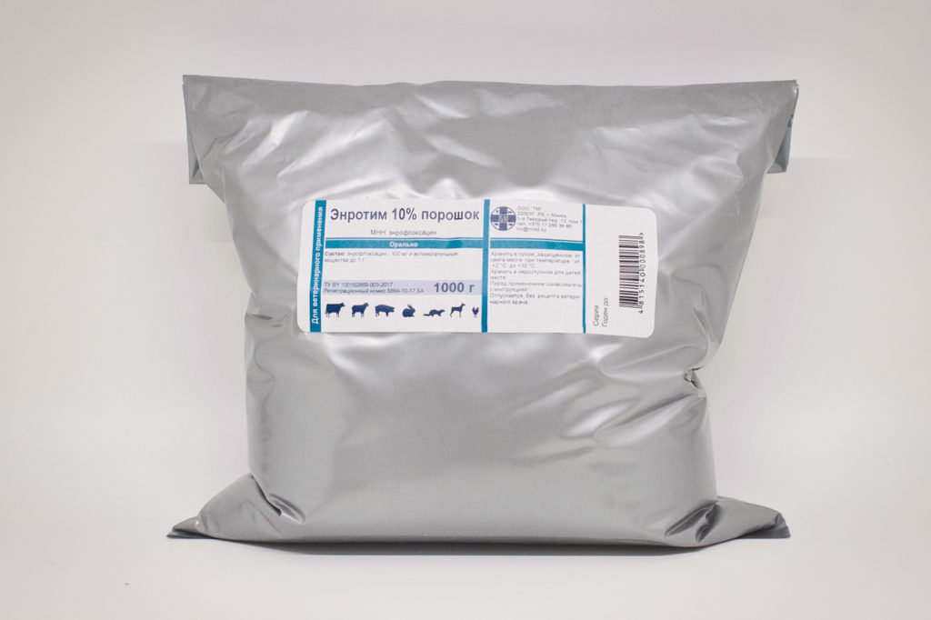 Птице: 100 г препарата разводится в 200 л питьевой воды и дается в течение 3 дней. При сальмонеллезе — до 5 дней.