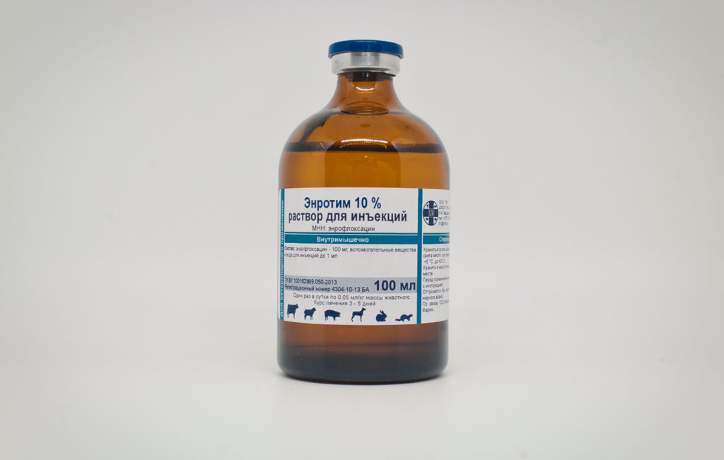 СОСТАВ В 1 мл препарата содержится 100 мг энрофлоксацина, вспомогательных веществ и наполнителя до 1,0 мл.