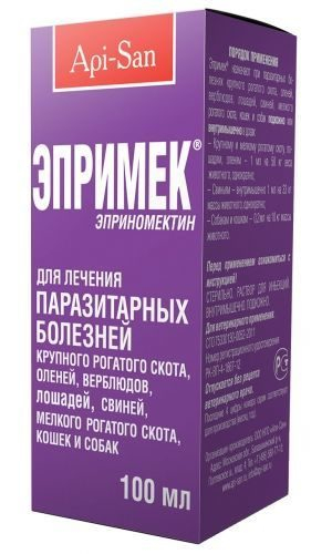 Собакам и кошкам Эпримек вводят из расчета 0.2 мл препарата на 10 кг массы животного (200 мкг действующего вещества на 1 кг массы).