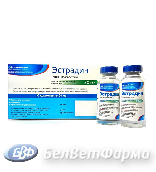 Препарат предназначен для лечения животных с персистентным желтым телом, используется в комплексной терапии животных с лютеиновыми и фолликулярными кистами, субинволюцией матки, эндометритами, а также для синхронизации охоты у коров и телок, индуцирования и синхронизации опоросов свиноматок, прерывания беременности у животных.