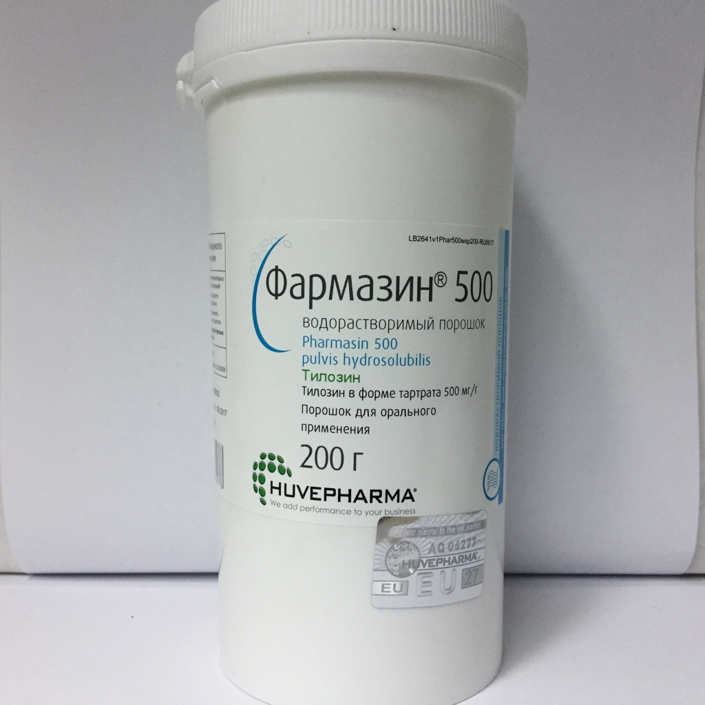 Назначают для профилактики и лечения респираторного микоплазмоза птиц, инфекционного синусита индеек, а также лечения дизентерии и гастроэнтероколитов бактериальной этиологии свиней, бронхопневмоний телят, вызванных чувствительными к тилозину возбудителями. Для борьбы с некробактериозом крупного рогатого и мелкого рогатого скота. ПРОТИВОПОКАЗАНИЯ Повышенная индивидуальная чувствительность к тилозину. Запрещается применение фармазина курам-несушкам и индейкам, которые дают яйца для потребления в пищу людей. Не рекомендуется назначать фармазин водорастворимый порошок одновременно с тиамулином, клиндамицином, левомицетином, пенициллинами (особенно с ампициллином и оксациллином), цефалоспоринами и линкомицином в связи с выраженным снижением антибактериального эффекта тилозина.