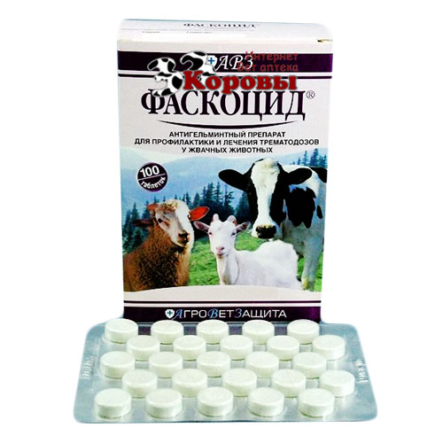 Фаскоцид таблетки применяют животным с лечебной и профилактической целью однократно индивидуально в следующих дозах:
