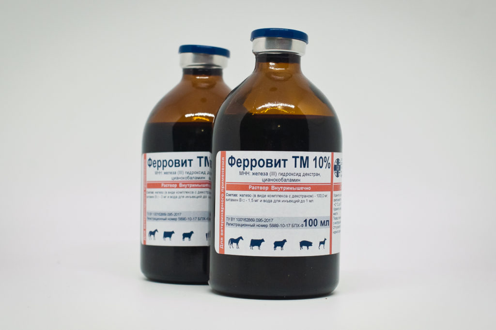СОСТАВ В 1 мл препарата Ферровит ТМ 10% содержится: 100 мг железа (в виде декстрана) и 1,5 мг витамина В12.