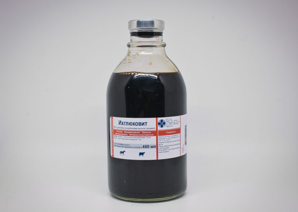 Для профилактики послеродовых субинволюций, эндометритов и маститов ихглюковит вводят в дозе 10 мл на 100 кг живой массы новотельным коровам двукратно внутримышечно или в межтканевое пространство тазовой полости (паравагинально) в первые два дня после отела. Повторно препарат применяют через 48 ч в той же дозе.