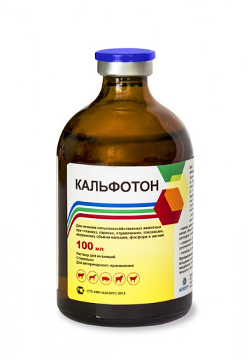 13. Кальфотон применяют животным парентерально внутривенно, внутримышечно или подкожно однократно в дозе 2 мл на 10 кг массы животного: