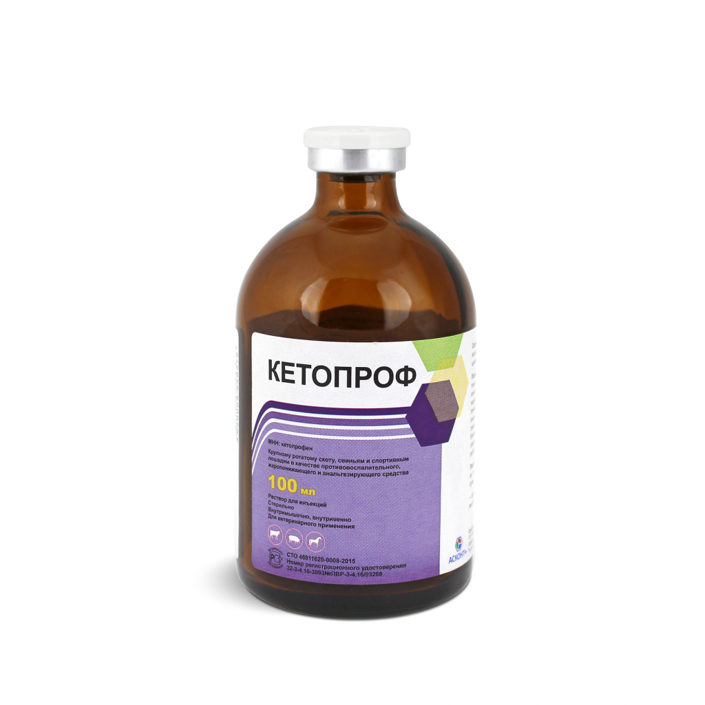 крупному рогатому скоту внутривенно или внутримышечно – 3 мл на 100 кг массы животного (эквивалентно 3 мг кетопрофена на 1 кг массы животного) в течение 1-3 дней;
