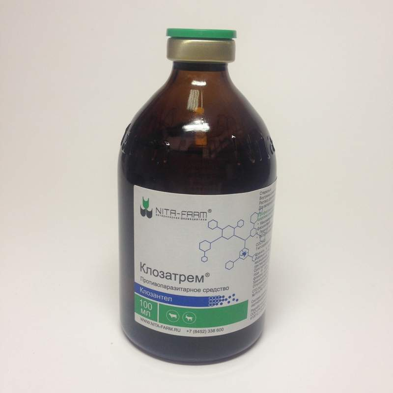 — при нематодозах и фасциолезе в дозе 0.5 мл на 10 кг массы животного (2.5 мг клозантела/кг массы животного);