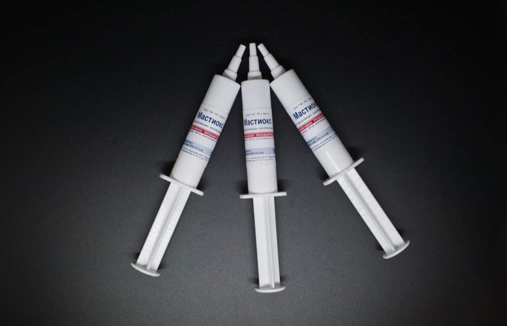 Препарат выпускают по 10,0 г в пластиковых шприцах-инъекторах, закрытых колпачками