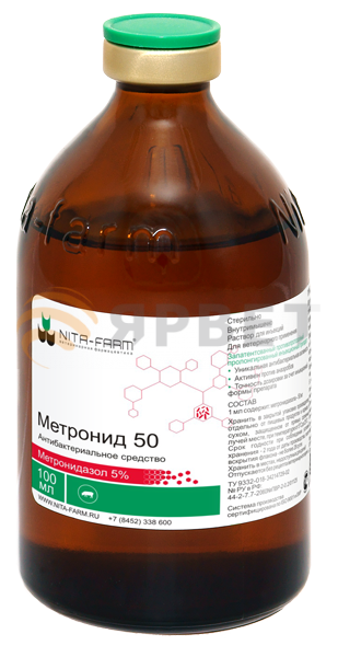 — дизентерия свиней, вызванная Treponema (Serpulina) hyodysenteriae и анаэробными бактериями; — балантидиоз свиней, вызванный Balantidium suis. Противопоказания к применению препарата МЕТРОНИД 50 — первая треть супоросности; — тяжелые нарушения почек и печени; — повышенная индивидуальная чувствительность к метронидазолу и другим компонентам лекарственного препарата.