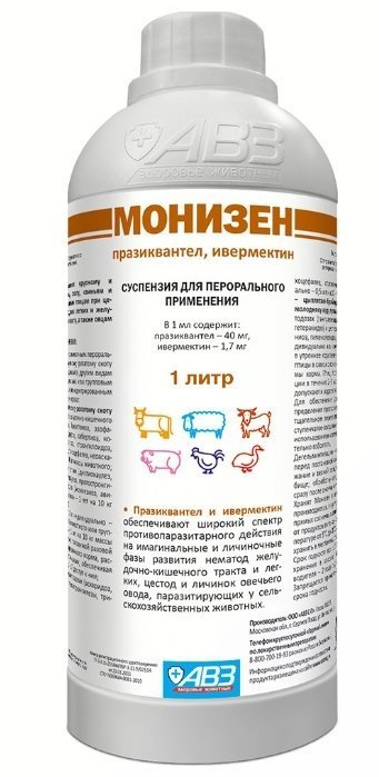 Перед массовыми обработками каждую серию «Монизена» испытывают на небольшой группе животных (5-7 голов) разного возраста и массы. При отсутствии в течение 3 дней осложнений приступают к обработке всего поголовья.
