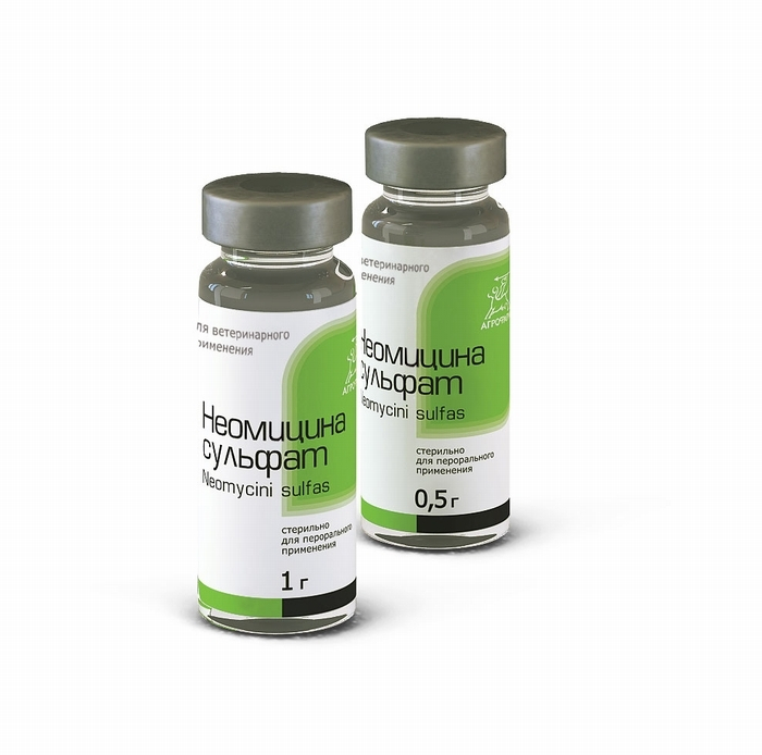 Препарат вводят внутрь 3 раза в сутки по 10-20 мг/кг массы тела животного. Курс лечения составляет 5-7 дней. Раствор неомицина можно применять наружно и местно для лечения инфицированных ран, абсцессов, фурункулов, пиодермий и ожогов. Местное применение препарата должно быть ограничено на небольшом участке и не в таких местах, где может наступить значительное всасывание. Неомицин можно комбинировать с бацитрацином, полимиксином.