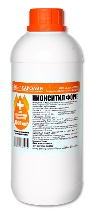Ниокситил форте применяют крупному рогатому скоту для лечения и профилактики эндометритов. Применение препарата не рекомендуется при острой и хронической сердечной недостаточности и повышенной чувствительности животных к компонентам лекарственного средства.