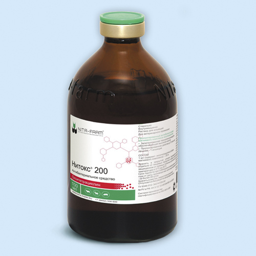 Нитокс 200 применяют для профилактики и терапии инфекционных заболеваний, вызванных чувствительными к окситетрациклину возбудителями, а также при вторичных инфекциях при вирусных заболеваниях. Крупный рогатый скот: респираторные заболевания, мастит, пастереллез, копытная гниль, кератоконьюктивит, раневые инфекции, анаплазмоз. Свиньи: респираторные заболевания, пастереллез, плеврит, мастит, атрофический ринит, ММА синдром, гнойный артрит, пупочный сепсис, абсцесс, раневые и послеродовые инфекции. Овцы, козы: респираторные заболевания, энзоотический аборт, копытная гниль, метрит, мастит, перитонит, раневые инфекции,. Противопоказания. Аллергия на составные части препарата. Нитокс 200 нельзя применять одновременно с кортикостероидами и эстрогенами. В связи с выраженным снижением антибактериального эффекта окситетрациклина препарат не рекомендуется применять одновре-менно с антибиотиками пенициллинового и цефалоспоринового ряда. Запрещается применение препарата собакам, кошкам, лошадям, животным с почечной недостаточностью, а также при сверхчувствительности к составным частям препарата.