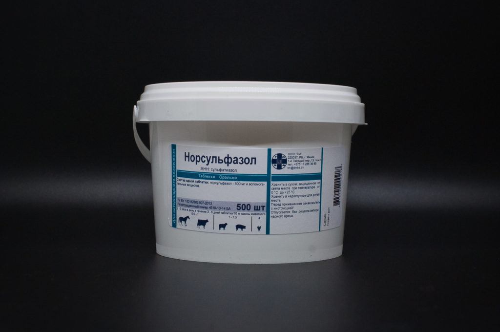 Препарат применяют при катаральной бронхопневмонии, плевритах, стрептококковом и стафилококковом сепсисе, гастроэнтеритах, диплококковой септицемии телят, а также при других бактериальных болезнях животных и птиц, возбудители которых чувствительны к норсульфазолу.
