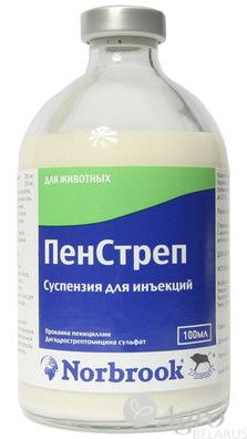 Назначают лошадям, крупному рогатому скоту, овцам и свиньям для лечения бактериальных инфекций дыхательных путей, в том числе пневмонии, атрофического ринита, листериоза, менингита, септицемии, токсемии вызванной маститом, инфекций мочеполовой системы, сальмонеллеза, а также вторичных бактериальных инфекций. ПРОТИВОПОКАЗАНИЯ Повышенная чувствительность к антибиотикам пенициллинового ряда и аминогликозидным антибиотикам. Почечная и сердечно-сосудистая недостаточность. Не допускается одновременное или последовательное применение ПенСтрепа с другими ототоксическими и нефротоксическими препаратами (неомицин. канамицин, гентамицин) вследствие возможного усиления ото- и нефротоксического действия. Препарат не рекомендуется вводить самкам в последнюю треть беременности. ПенСтреп запрещается использовать овцам, молоко которых используют в пищевых целях.