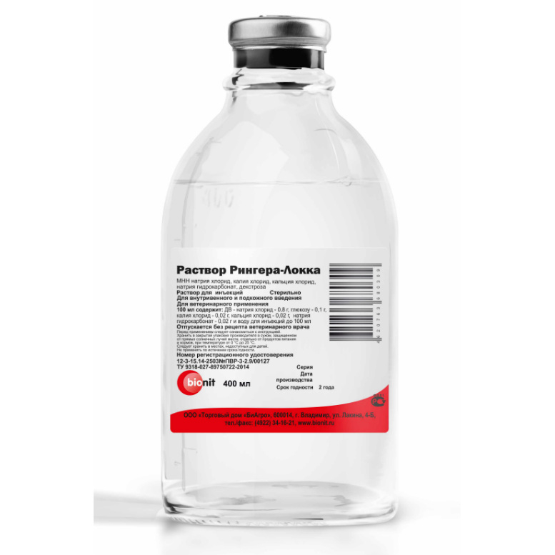 Раствор Рингера-Локка применяют животным при диспепсиях и других заболеваниях, сопровождающихся обезвоживанием и интоксикацией организма, кровопотерях, а также для промывания ран и глаз.