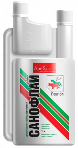 Санофлай применяют крупному рогатому скоту и лошадям с помощью дозирующего устройства, нанося на кожу спины вдоль позвоночника от холки до крестца из расчета 0,3 мл на 10 кг массы животного. Обработку крупного рогатого скота проводят в пастбищный период один раз в 4 – 6 недель в зависимости от численности насекомых. Дойных коров следует обрабатывать сразу после дойки. Лошадей обрабатывают в период активности насекомых и клещей. Защитное действие Санофлая продолжается не менее 28 дней после однократной обработки. В случае пропуска очередной обработки, применение препарата возобновляют в той же дозе и по той же схеме.