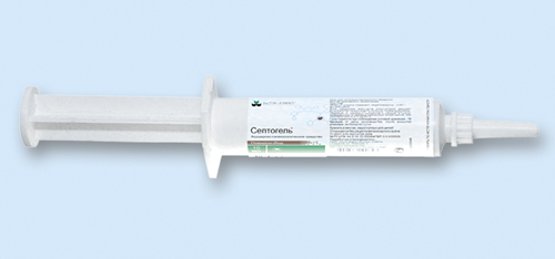 Перед введением препарата Септогель® необходимо освободить пораженную четверть вымени от содержимого, сосок продезинфицировать. Тонкий конец наконечника шприца срезают. Наконечник вводят в отверстие соскового канала и осторожным нажатием на поршень шприца выдавливают содержимое, после чего проводят легкий массаж четверти и соска в направлении снизу вверх.