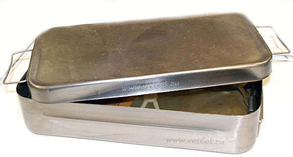 Кипятильник дезинфекционный огневой П-34-1, без электронагревателя (прямоугольная стерилизационная коробка). Предназначен для стерилизации медицинского и ветеринарного инструмента.