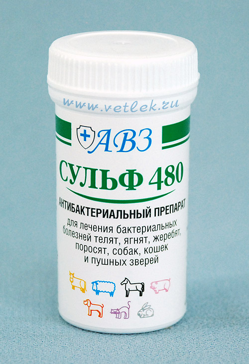 Сульф применяют животным перорально в следующих суточных дозах: Сульф 480 - 1 таб. на 16 кг массы животного. Суточную дозу препарата задают животным в 2 приема с интервалом 12 ч. Лечение проводят в течение 5-7 дней.
