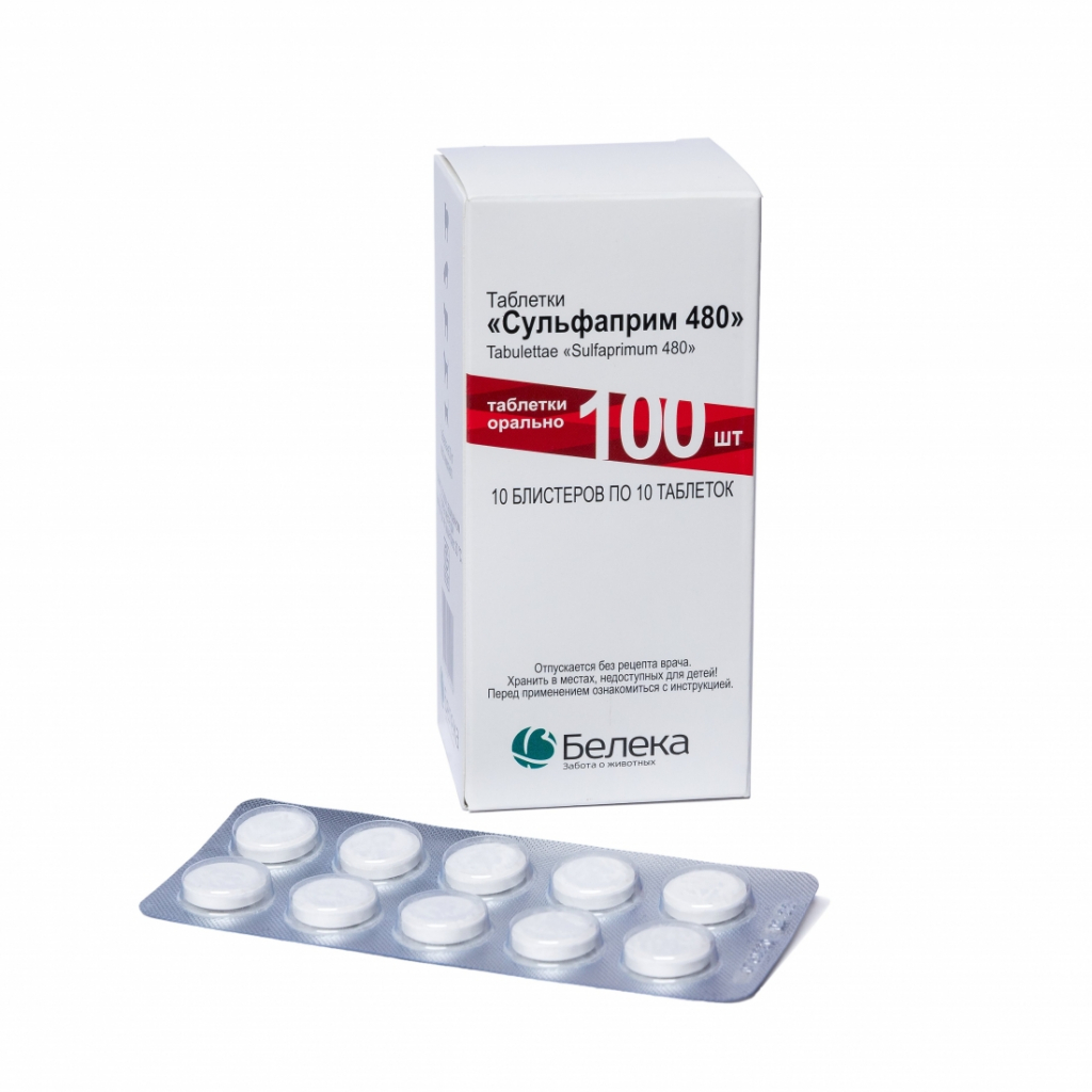 | Состав | В одной таблетке массой 1 г содержится 400 мг сульфадимидина и 80 мг триметоприма |