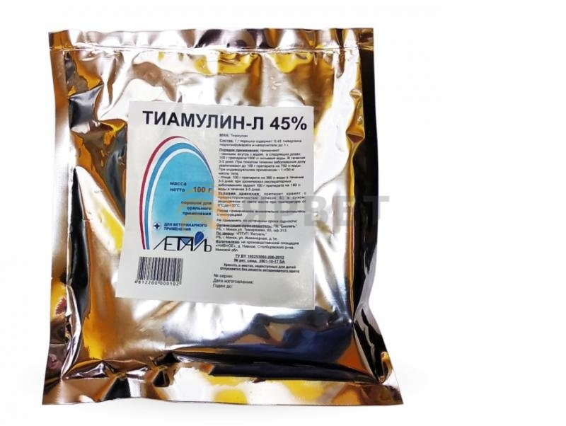 Для профилактики хронических респираторных заболеваний цыплят и индюшат«Тиамулин-Л 45%» применяют по следующей схеме: — 1-3-й день жизни — 100 г препарата на 360 л воды; на 28-32-й день жизни — 100 г препарата на 180 л воды. При наличии сероположительной реакции задают 25 г препарата на 100 л воды 3 дня подряд в каждый из указанных периодов.