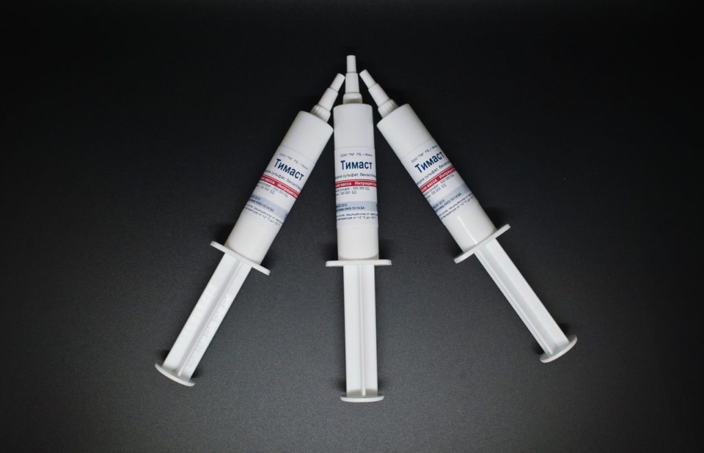 Препарат выпускают по 10,0 г в пластиковых шприцах-инъекторах, закрытых колпачками.