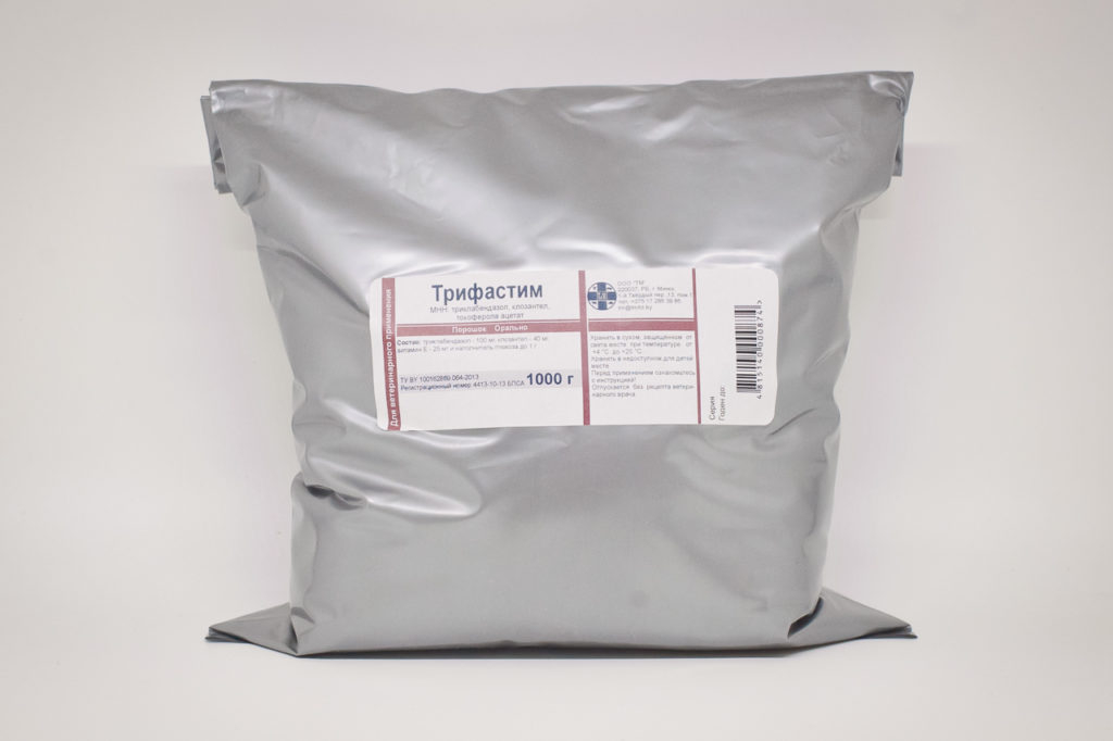 Крупному и мелкому рогатому скоту трифастим применяют однократно индивидуально с кормами в дозе 50 мг препарата на 1 кг массы тела.