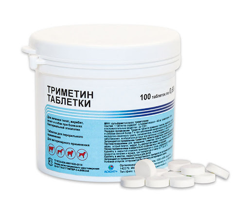 Триметин таблетки применяют телятам, жеребятам, ягнятам и собакам массой более 7 кг при заболеваниях мочеполовой системы, органов дыхания, желудочно-кишечного тракта, сальмонеллезе, колибактериозе, а также при других заболеваниях, возбудители которых чувствительны к сульфаметоксазолу. Противопоказанием для применения Триметина таблеток являются заболевания органов кроветворения, зрительного нерва, острый гепатит, нефрит, В12-дефицитная анемия, и повышенная чувствительность к сульфаниламидным препаратам. Запрещается применение Триметина таблеток животным с развитым рубцовым пищеварением.