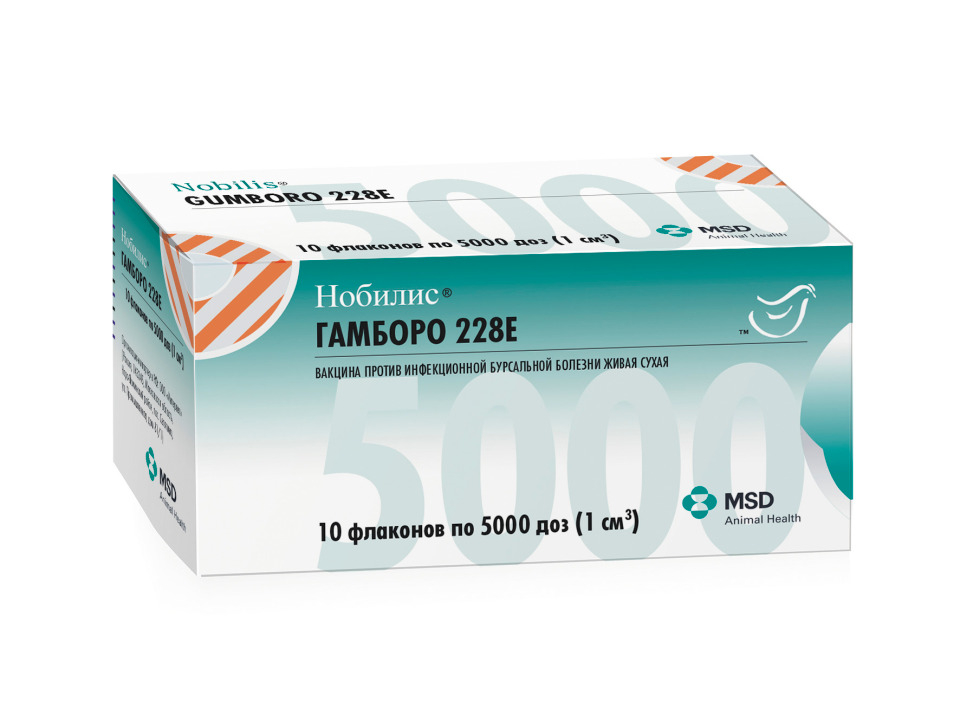 Вакцина предназначена для активной иммунизации цыплят против болезни Гамборо. ПРОГРАММА ВАКЦИНАЦИИ Цыплят прививают в возрасте 7-28 дней. Наиболее точно возраст птицы определяют в зависимости от титра материнских антител у цыплят суточного возраста и дальнейшим расчетом сроков вакцинации. Вакцина Нобилис Гамборо 228Е вызывает защитный иммунитет у цыплят, титры материнских антител у которых на момент вакцинации не превышают 9 log в реакции вирус нейтрализации. В случае значительных различий титров материнских антител в исследуемой группе птицы, рекомендуется двукратное применение вакцины с интервалом в одну неделю.